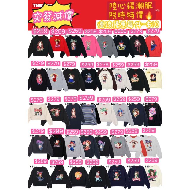 陸心煖特價新款衛衣-數量有限(S1-6,S12,S14-16,S21-23,S27-S29,S31-39