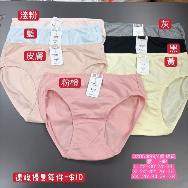 D205-棉質薄身底褲-一套4條(訂單備註顏色)