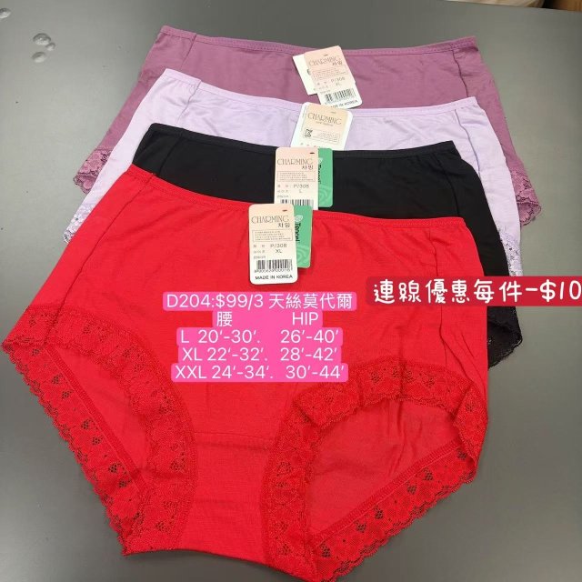 D204-莫代爾天絲蕾絲底褲-一套3條(訂單備註顏色)