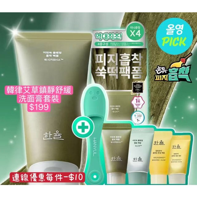 韓國韓律艾草舒緩洗面膏套裝-去黑頭粉刺清潔