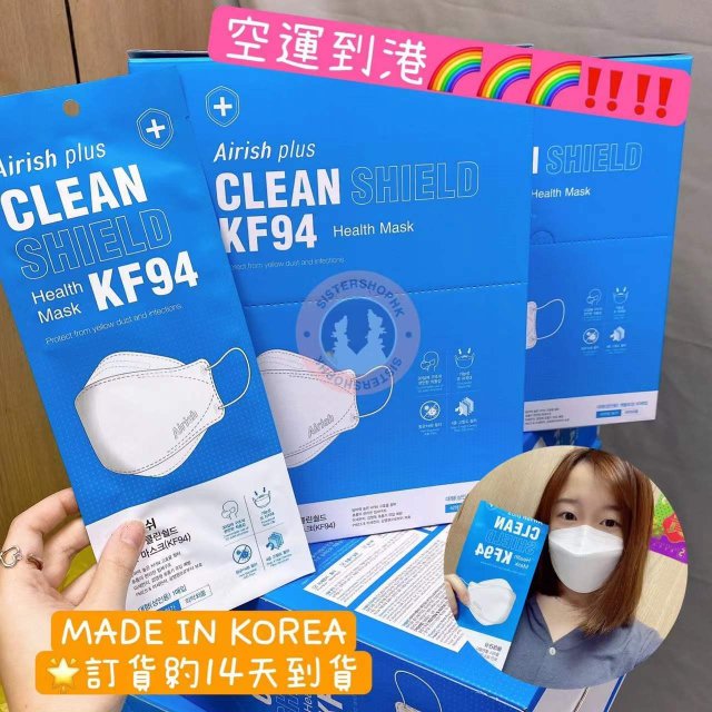 訂貨約2星期左右--AIRSH PLUS韓國四層KF94口罩 (一套100個)$279/1套,3套以上$269/1套