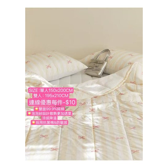 BD113-韓國雙面純棉+泡泡紗蝴蝶結抗菌防敏被