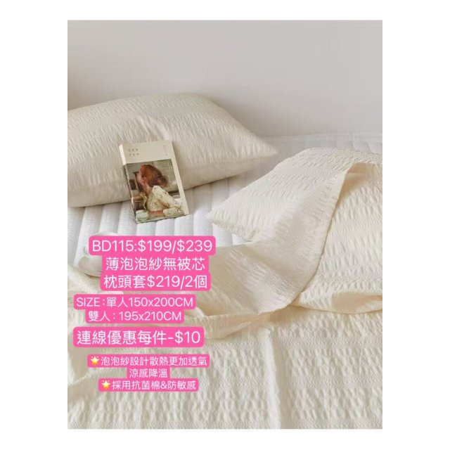 BD115-韓國超薄泡泡紗抗菌防敏被(無被芯)