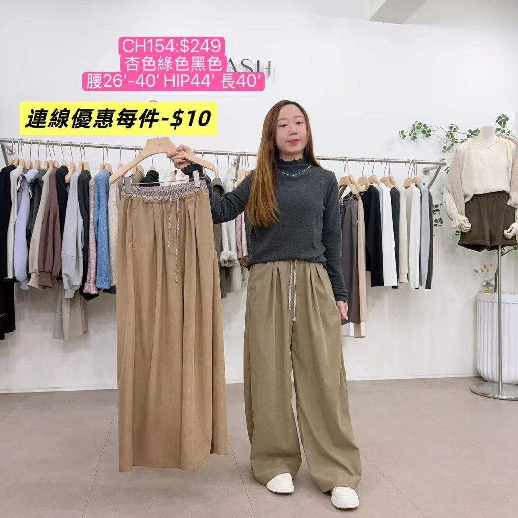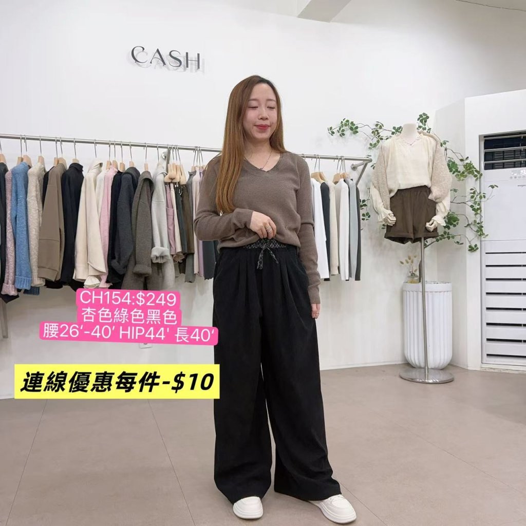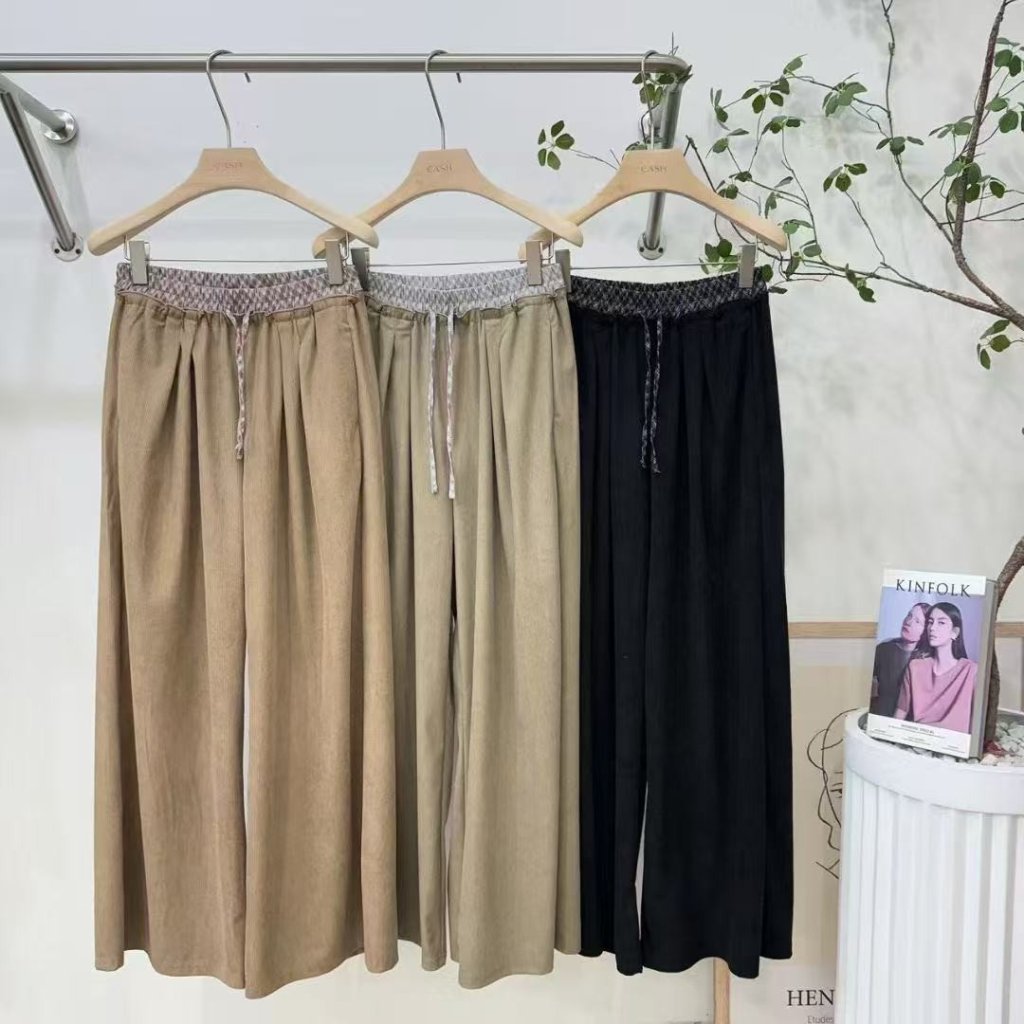 CH154-CA-格仔拼邊燈芯絨寬褲