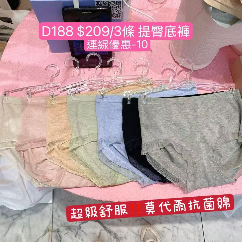D188-YY-皇牌提臀抗菌褲(留言備註顏色|一套三條-任揀顏色)