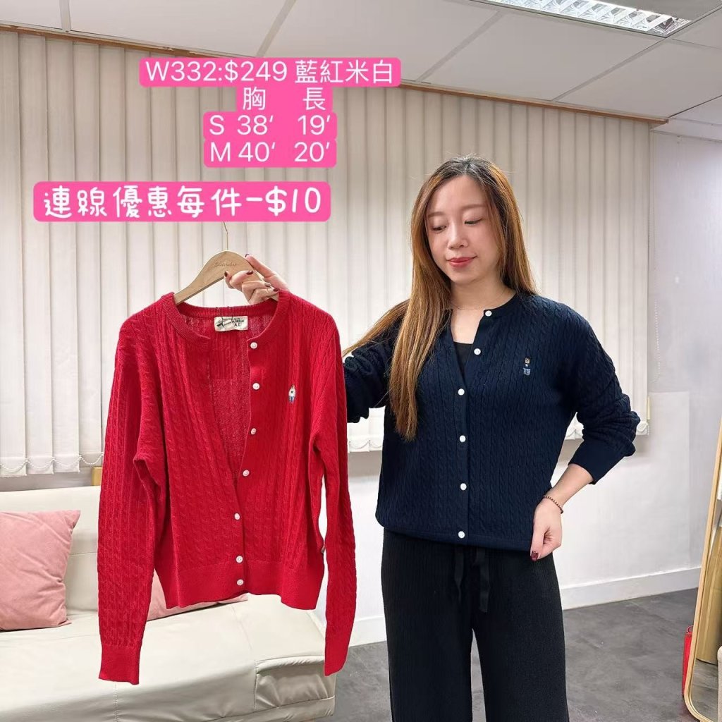 W332-WHOAU麻花開鈕冷衫