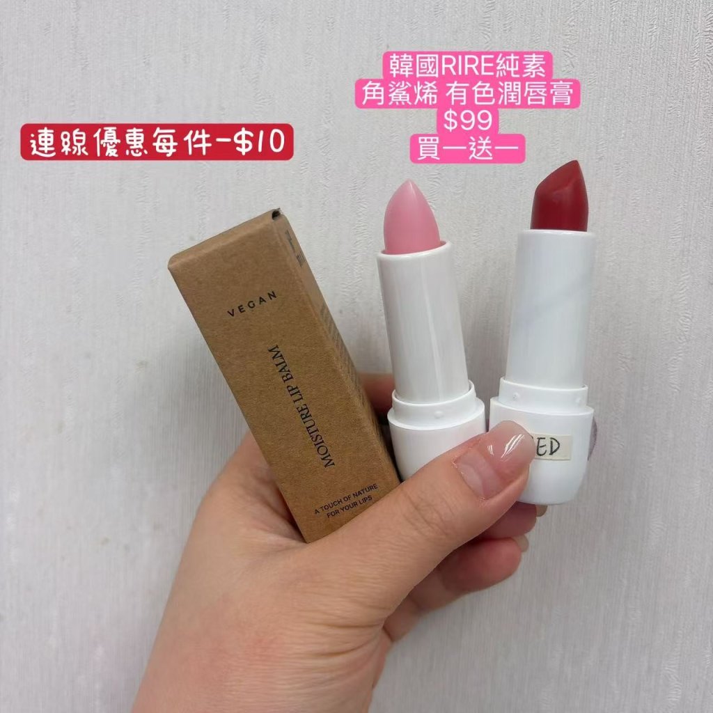 韓國RIRE角鯊烯有色唇膏-買一送一|自然顏色|純素成份