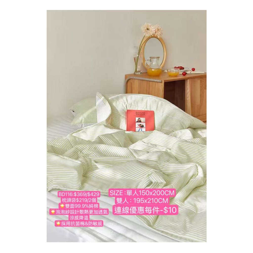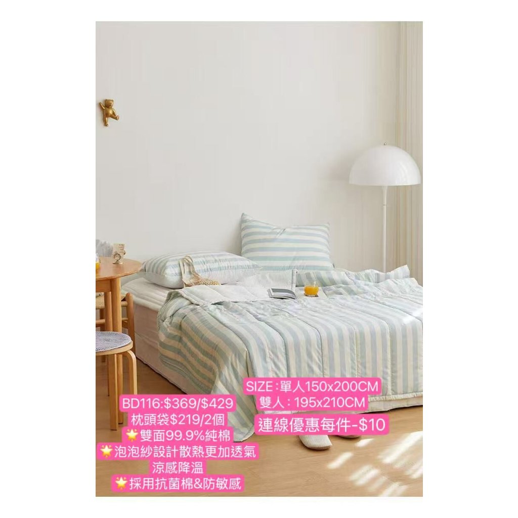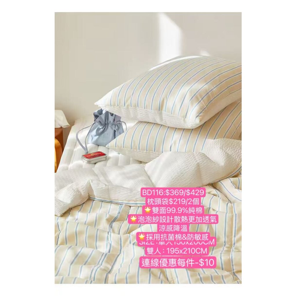 BD116-韓國雙面純棉+泡泡紗抗菌防敏被