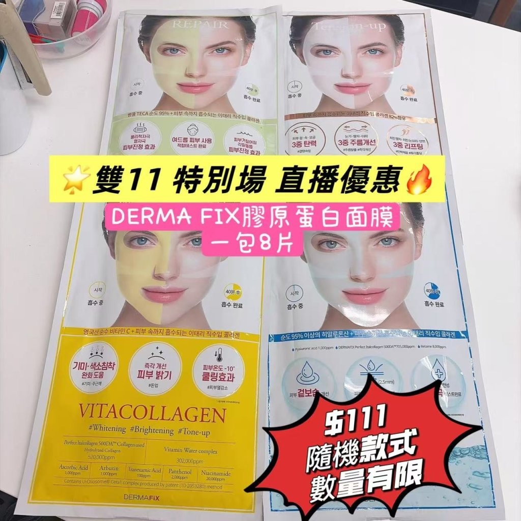 雙11優惠-DERMAFIX膠原蛋白面膜-一包八片|隨機款出